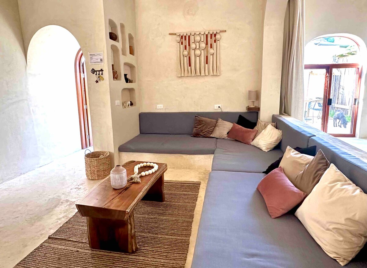 Džungļu oāzes lofts ar privātu baseinu un terasi!Atpūtieties šajā stilīgajā otrā stāva bēniņu dzīvoklī ar privātu terasi un nelielu baseinu, no kura paveras skats uz sulīgiem džungļiem!Uzturēšanās laikā varat bez maksas izmantot velosipēdus, izmantot pilnībā aprīkotu virtuvīti un nodrošināt sirdsmieru visu diennakti apsardzē.Šī modernā atpūtas vieta, kas paredzēta pāriem, individuāliem ceļotājiem un digitālajiem klejotājiem, ir mājīga, klusa un dabas ieskauta tikai 15 minūšu attālumā no pludmales un centra!Atpūtieties savā "king size" gultā, iemērciet sevi baseinā vai izpētiet tuvumā esošās cenotes, pludmales un daudz ko citu!