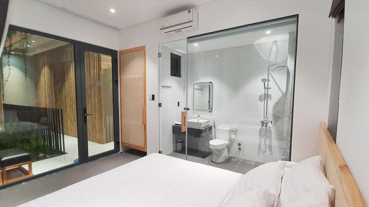 Dao Room atrodas nelielas četrstāvu mājas otrajā stāvā Kvinjonas centrā, tikai 5 minūšu gājiena attālumā no pludmales. Šajā nelielajā privātajā 18 m² istabā ir neliela vannasistaba, kompakta virtuvīte, pie sienas stiprināms televizors, gaisa kondicionētājs, drēbju skapis, rakstāmgalds un Wi-Fi. Istaba ir piepildīta ar dabisko gaismu, tajā ir gultas veļa, koka mēbeles un daži ar rokām darināti akcenti, kas piešķir siltu un mājīgu noskaņu. Izejiet uz balkona ar skatu uz mierīgu ielu, kur laiku pa laikam var dzirdēt pilsētas skaņas.