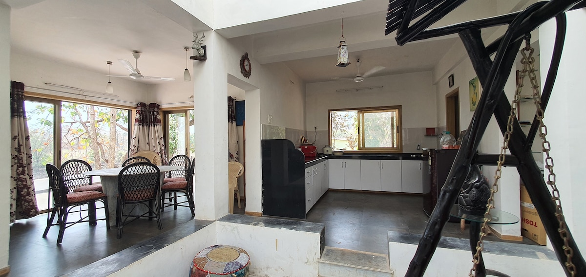 Izbaudiet mierpilnu atpūtu gleznainā lauku mājā ar 3 guļamistabām un 4 vannasistabām Nasrapurā, Karjatā. Šajā ostā, ko rotā sulīgi apstādījumi, ir baseins, plūstoša upe un kas atrodas Hotelier India. Ar mīlestību veidotais lauku dizains piedāvā plašas, atklātas vietas, aicinot brīvības sajūtu un kopību ar dabu - ideālu aizbēgšanu pilsētas detoksikācijai. Tā izceļas ar apņemšanos nodrošināt vides ilgtspēju. Šajā villā var nakšņot 15 viesi un 30 viesi dienā, tāpēc tā ir ideāli piemērota ballītēm.
