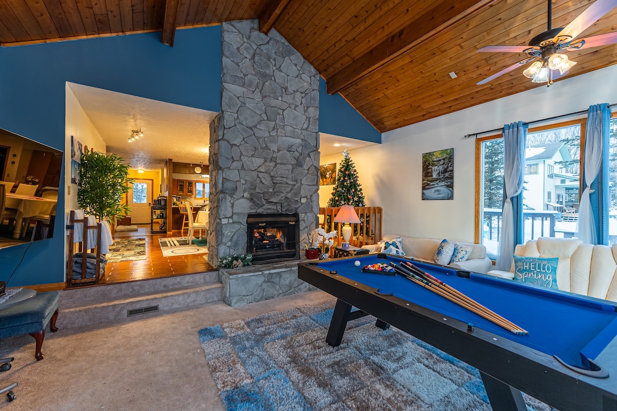 Šī unikālā kalnu atpūtas vieta, kas atrodas tikai 1 jūdzes attālumā no Sniega kurpēm, ir pārpildīta ar ģimenēm draudzīgām izklaidēm un luksusa papildērtībām. Ideāls palaišanas laukums piedzīvojumiem visa gada garumā un atpūtai Snowshoe. - Golfa simulators - Privāta pirts - Baseina galds - Arkādes numurs - Slēpošanas/velosipēda nomešana. - Āra filmas iestatīšana - Ugunskura vieta -TV katrā istabā - Ātrgaitas Wi-Fi - Satriecošs skats uz kalniem