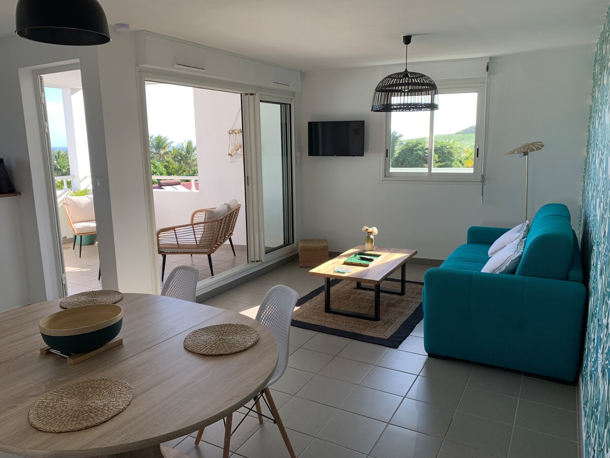 Mājīga studija ⭐️⭐️⭐️ Petite Ilā: satriecoši skati, jumta baseins un pludmale 10 minūšu attālumā!🌊🏖️ Vai sapņojat par paradīzi salas dienvidu sirdī? Šī pilnībā aprīkotā studija, kas atrodas Petite Île, piedāvā labāko no abām pasaulēm: ciemata mieru un tuvumu dienvidiem Atrodas augšstāvā no mūsu villas aklās zonas aizmugurē, no kuras paveras skats uz jūru, terase ar skatu uz jūru 🌴 Kas jums patiks: * Jumta baseins * Grand Anse Beach 10 min attālumā * Daba un miers * Aprīkotā studija