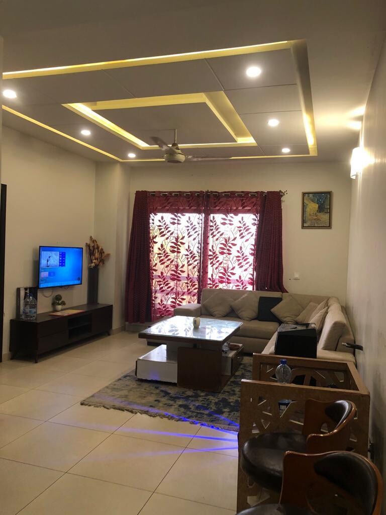 Kick back and relax in this calm, stylish space. Forget your worries in this spacious and serene space. It is a 2-bed well furnished luxury private and independent apartment. Apartment is equipped with a blazing speed 20mb/s Optic fiber. Smart TV preinstalled with YouTube, NETFLIX and other apps. Free parking is available. The Apartment is Perfect in size for 4 to 6 guests Ideal Location near to Airport. All Facilities Available Water, Gas, Electricity, Backup Generators, Elevator, Car Porch .