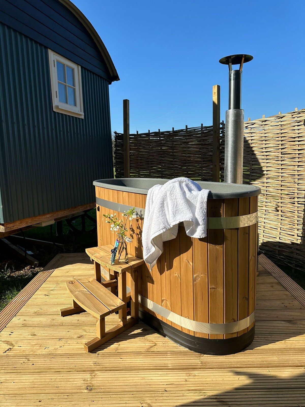 Burbuļvanna, luksusa ganu būda, privāta un norobežota