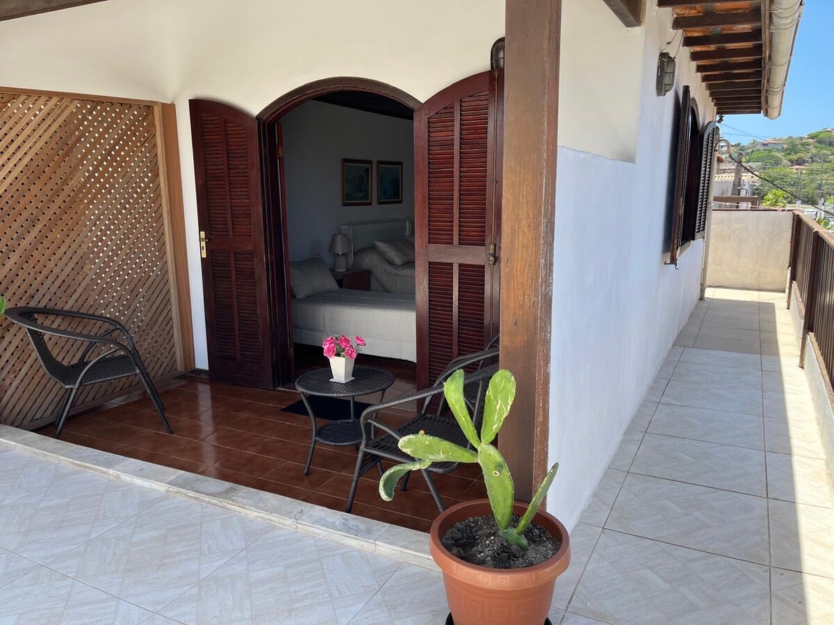 Skaista privāta istaba ar mini bāru, gaisa kondicionētāju un viedtelevīziju ar Netflix. Lieliska atrašanās vieta ar balkonu un panorāmas skatu uz Praia dos Anjos. Praia do Forno taka un osta, kur notiek braucieni ar laivu. Labākie restorāni mazāk nekā 2 minūšu gājiena attālumā un autoosta 10 minūšu gājiena attālumā. Piezīme. Kāpiet pa kāpnēm, kā norādīts bildēs . Mums ir apartamenti Praia Grande tbm: airbnb.com/h/kitnet2arraialdocabo airbnb.com/h/kitnet1arraialdocabo airbnb.com/h/kitinetecoladopraiagrande