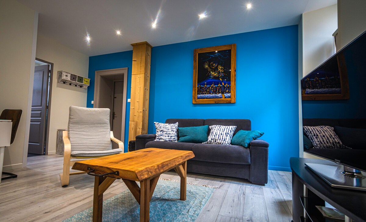 Četrzvaigžņu brīvdienu⭐️ īre⭐️ ♥️Iespēja izmantot "romantiskas" iespējas pēc pieprasījuma♥️ Aizraujas ar pastaigām un kalnu riteņbraukšanu, jūs atradīsiet savu laimi, pateicoties daudzajiem pārgājieniem no ciemata. Nogaršojiet šīs mājas eleganci ar vannasistabu, kas aprīkota ar divvietīgu balneoterapijas vannu, lai baudītu romantisku nedēļas nogali...
