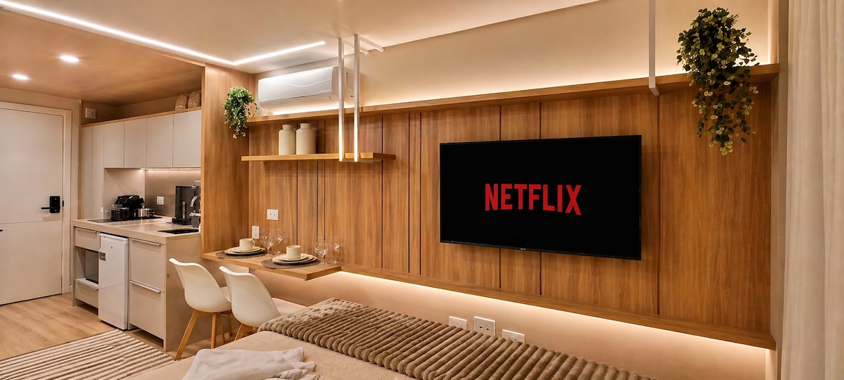 Vista da Cidade com Ar Cond, Piscina e Academia