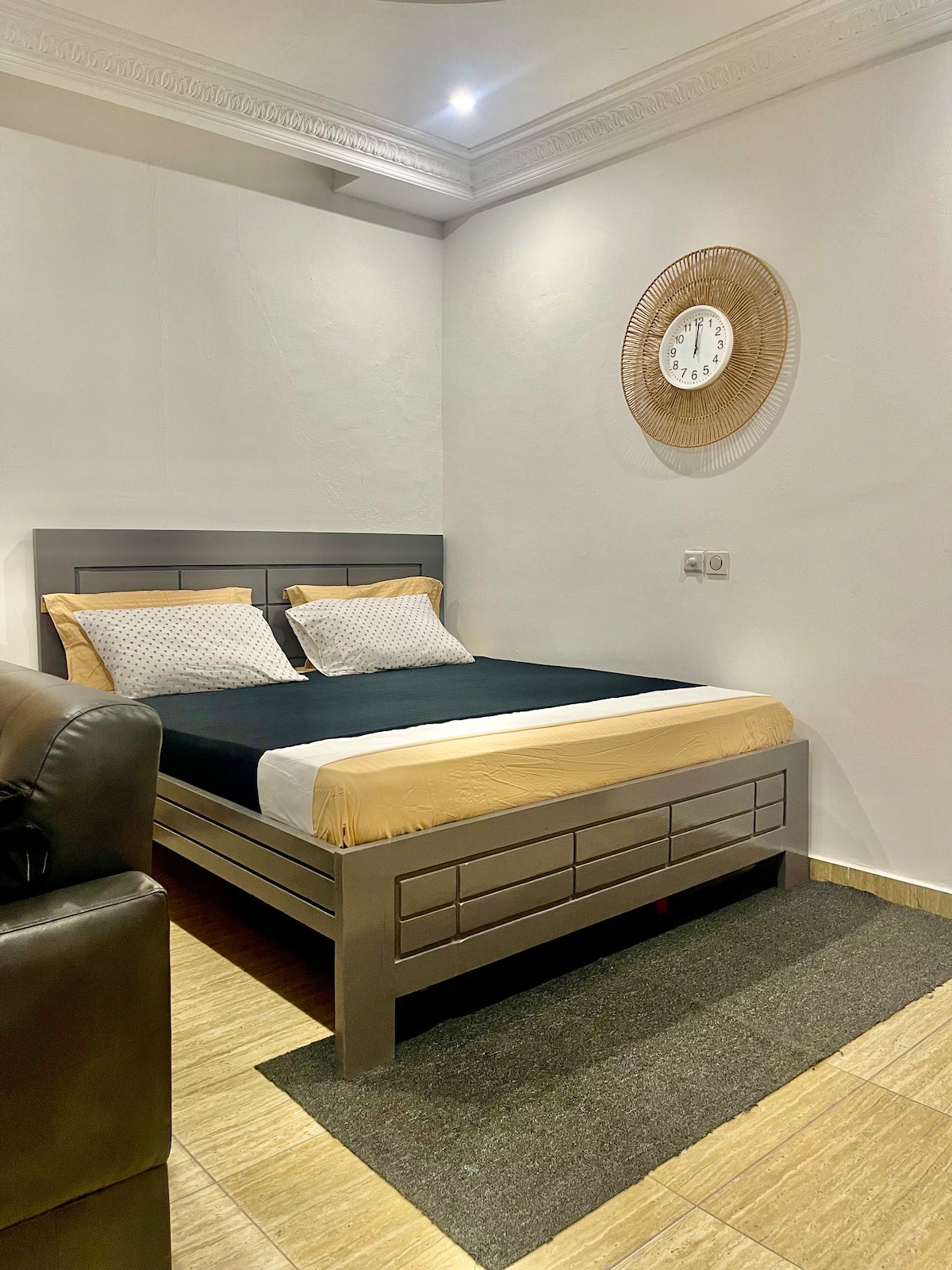 Atjaunots dzīvoklis. Ideāli atrodas pašā Brazavilas sirdī. Šajā dzīvoklī var apmesties 2 cilvēki. Veļas mašīna, Wi-Fi savienojums, kanāla kaste, gaisa kondicionētājs, ģenerators, ūdens brezents, aprūpētājs un bezmaksas autostāvvieta. Gultas veļa, vannas palags.