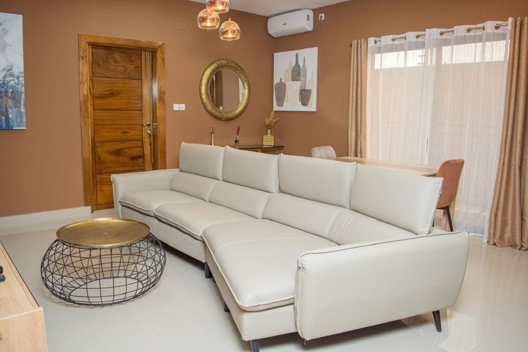 Ļoti jauks, pilnībā mēbelēts dzīvoklis. Sastāv no divām guļamistabām, vienas viesistabas, vienas minivirtuves, vienas vannasistabas un modernas tualetes. • Tam ir liels 55collu QLED ekrāns ar Netflix un Wi-Fi. • Diennakts aprūpētājs, 7/7 uzkopšanas pakalpojumi, ko nodrošina signalizācijas sistēma un elektriskais žogs, kā arī novērošanas kameras. • Ģenerators elektroenerģijas padeves pārtraukuma, ūdens partijas un privātas autostāvvietas gadījumā.