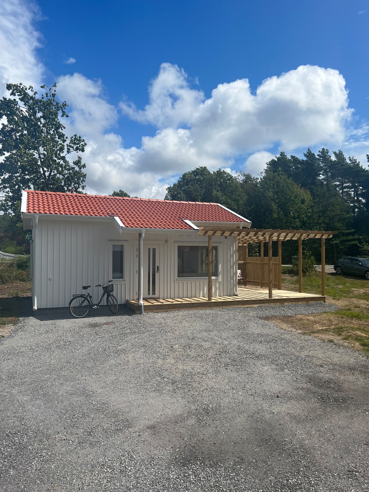 Vi hyr ut vår gäststuga som ligger bredvid våran villa . Med egen avskild solaltan ,entré , egen parkering och grillplats. Dåligt med kommunikationer man bör ha bil . Stugan ligger i ett lugnt område med en 250 meters prommenadstig till fin sandstrand och vackra klippor. Stigen är brant svårt att köra barnvagn ner Här kan du sola, bada och fiska medans barnen fiskar krabbor. Fina strövområden med cykelvägar och skogsstigar. Området bjuder på vacker natur med många möjligheter till avkoppling.