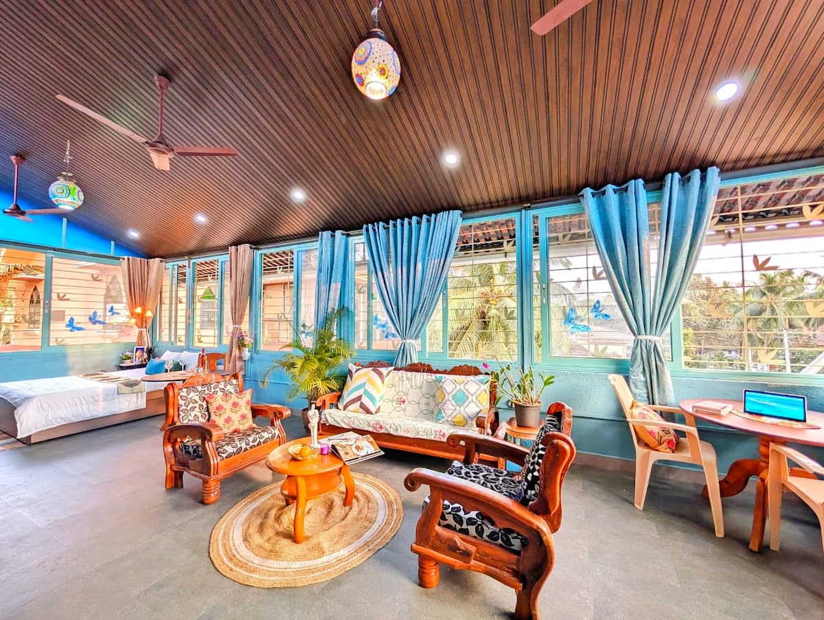 Radot šo satriecošo māju, man bija skaista boho noskaņa. Diezgan nook, no kura paveras skats uz bioloģisko virtuves dārzu ar skatu uz laukiem, jūs tiksiet novirzīts uz aizgājušo laikmetu, kur viss bija daudz lēnāks. Pavadot laiku, vērojot putnus un bites, baudot nesteidzīgas tējas krūzes, tērzējot uz balkona, bija daļa no dienas. Koku ieskauts, jūs redzat vēl vienu Goa pusi. Tomēr jūs esat burtiski 5 minūšu attālumā no Goa ballīšu centra.