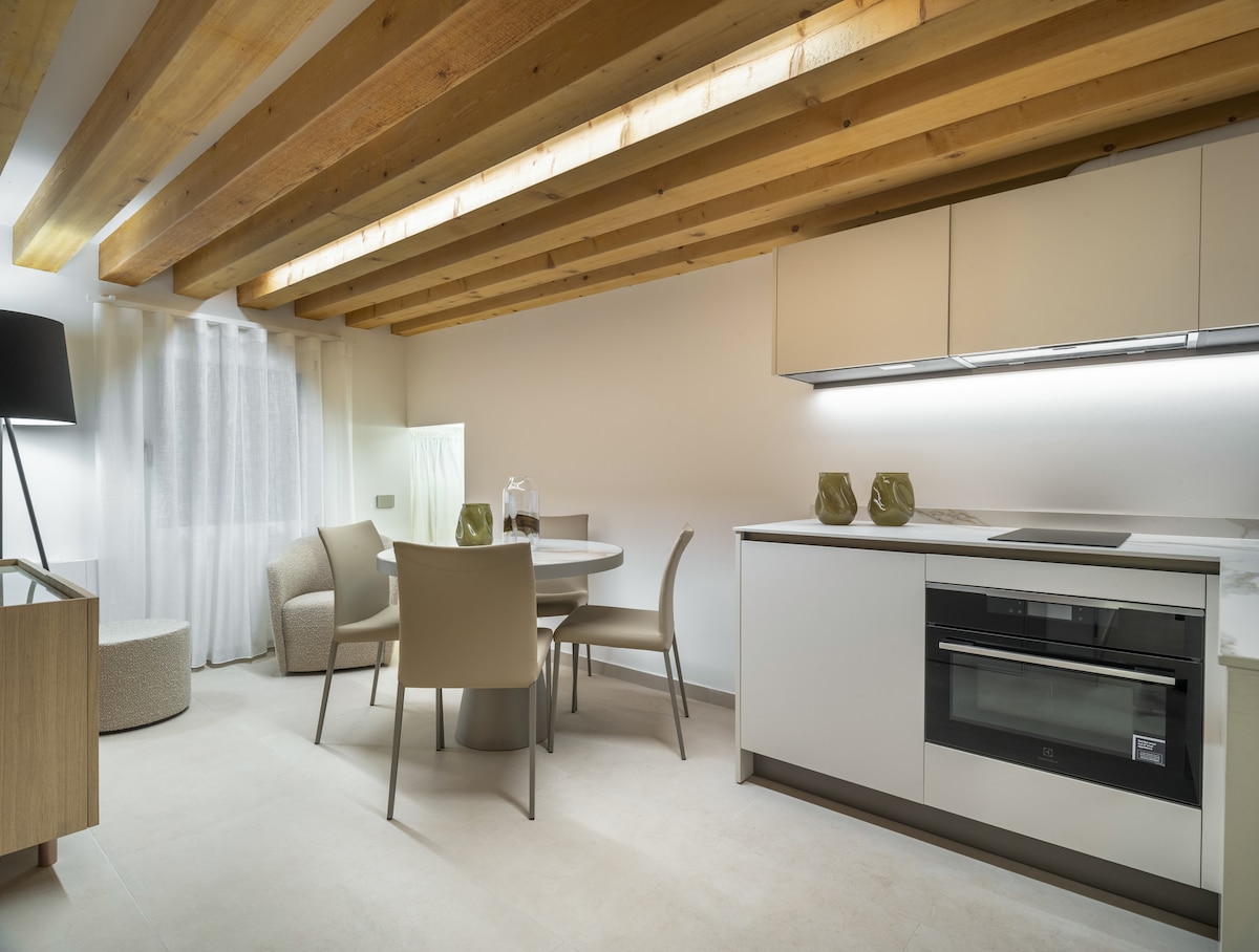 Šis elegantais dzīvoklis atrodas pašā Venēcijas sirdī, San Polo rajonā, tikai dažu soļu attālumā no Rialto tilta, un piedāvā komfortu un atpūtu unikālā vidē. Tajā ir galvenā guļamistaba, divguļama dīvāngulta un divas vannasistabas, viena ar privātu saunu un burbuļvannu. Galvenais ir satriecoša jumta terase (altāna) ar skatu uz Lielo kanālu, kas ir ideāli piemērota brokastīm, saulrieta aperitīviem un neaizmirstamiem mirkļiem virs pilsētas, ko ieskauj vēsturiski jumti, klusā, bet centrālā vietā.