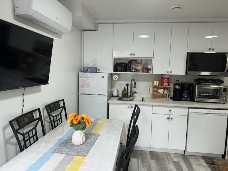 Laipni lūgti jūsu modernajā, viesnīcas stila privātajā numurā, kas paredzēts komfortam, atpūtai un nedaudz greznības. Šī telpa ir pārdomāti iekārtota ar augstas klases detaļām, un tā piedāvā mierīgu un modernu atpūtu, kas ir ideāli piemērota pēc ceļojuma vai pilsētas izpētes dienas. Kāpēc izvēlēties mūs? • Nav pakāpienu/kāpņu. Autostāvvieta tieši pie durvīm • Gaisa kondicionētājs ✅ • Mierīga un droša apkaime Ideāli piemērots • Pārcelšanās ar prāmi vai agrīni lidojumi • Vankūveras iepazīšana • Viesi, kuri novērtē tīru, modernu un augstas kvalitātes mājokli