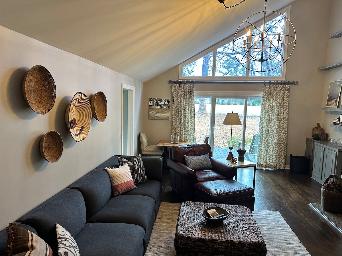 Izbaudiet Pinehurst mieru šajā atjaunotajā dzīvoklī ar 3 guļamistabām un 2 vannasistabām, kas atrodas blakus 5. golfa laukumam – tikai dažu minūšu attālumā no Pinehurst Village, Pinehurst Fair Barn un pasaules līmeņa golfa laukuma. Ideāli piemērots gan ģimenēm, gan golfa grupām! Izbaudiet pilnībā aprīkotu virtuvi, mājīgu dzīvojamo telpu ar spēļu grozu un pārdomātus ģimenes akcentus, piemēram, augsto krēslu un bērnu rotaļu nožogojumu. Pavadiet dienas, iepazīstot zaļumus, iepērkoties ciematā un vērojot saulrietu caur priedēm no privātās terases.