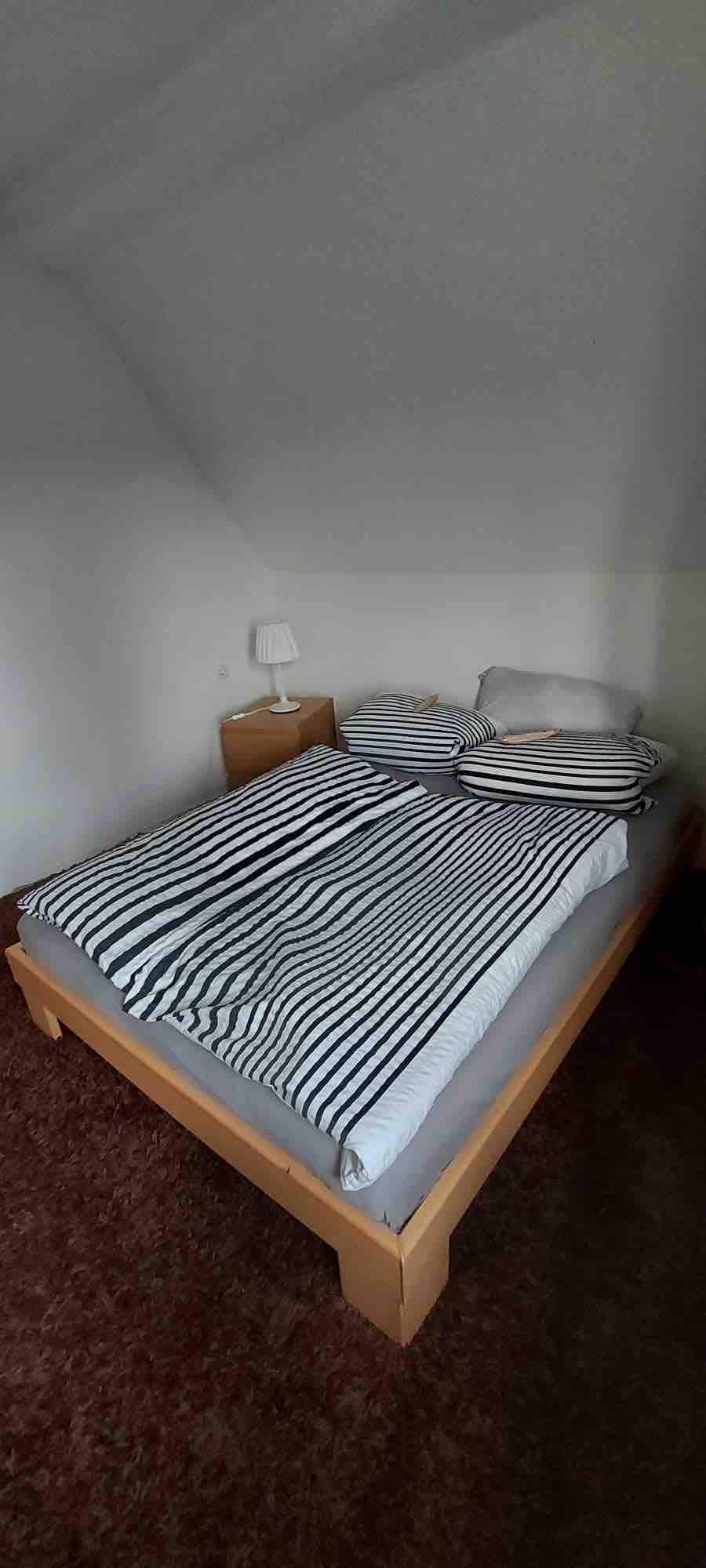 Die 60m² Wohnung mit Wohnküche, Schlafzimmer, Wohnzimmer mit Schlafcouch für zwei Personen und Bad liegt in einem abgetrennten Teil unseres Hauses mit eigenem Zugang. Ein von der Terrasse aus sichtbares Storchennest ermöglicht Jahr für Jahr die Beobachtung eines Storchenpaars. In eurem 250m² großen Garten könnt ihr euch von den Hühnern täglich ein Ei pro Kopf holen! Saisonal schenkt der Garten Euch auch Äpfel, Kirschen, Himbeeren, Erdbeeren, Haselnüsse, Holunderblüten und diverse Kräuter.