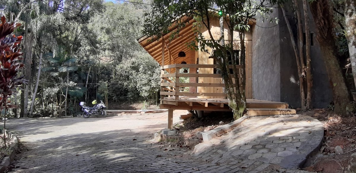 Atpūtieties šajā klusajā un modernajā telpā, kas atrodas 15 km attālumā no Doutor Pedrinho centra, netālu no Cachoeira Véu de Noiva, privātā lauku saimniecībā. Romantiska namiņš ar iekštelpu vannu, lauku mājas virtuvi, kamīnu, lauku mājas vannasistabu ar koka stumbra izlietni, gāzes apsildāmu ūdeni, starpstāvu un lieliem logiem, lai baudītu dabu. Āra zona ar lielu terasi, ugunskura vietu un šūpuļtīklu starp kokiem. Nāciet un atklājiet šo mājokli, kas radīts ar lielu mīlestību un pieķeršanos! 💙🏡🌑