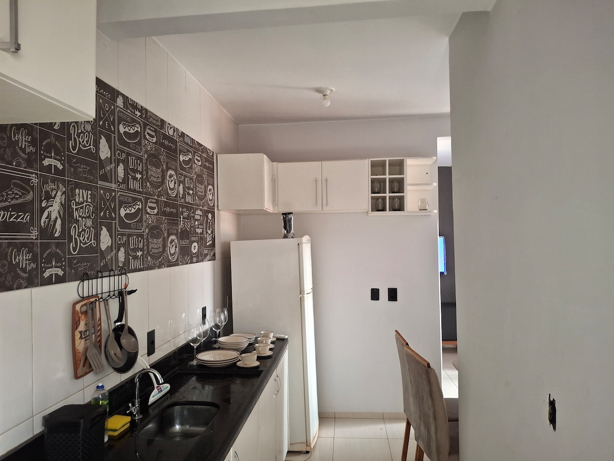 Apartamento de 3 quartos todos com ar split sala com ar cozinha com geladeira fogao de 6 bocas , microondas , purificador de agua , liquidificador , sanduicheira, chaleira etc. Quarto suite com cama queen e TV 42 , quarto casal cama padrão , Quarto solteiro com 2 camas e 1 cama extra e armario , sala com painel de TV ,46 polegadas tabua de passar , ferro, máquina de lavar, Banheiro c/ secador Localização privilegiada próximo ao shopping, supermercados, panificadoras, bares e restaurantes