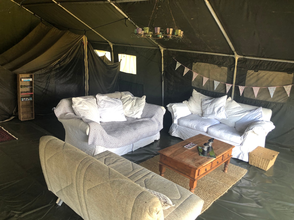 Luksusa safari telts glempings ar burbuļvannu