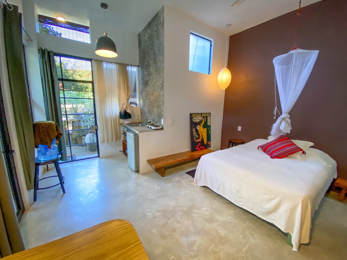 Laipni lūdzam mūsu apburošajā penthausā pašā Sajulitas sirdī! Izbaudiet Meksikas arhitektūru un dzīvošanu brīvā dabā ar elpu aizraujošiem Sajulitas skatiem no jūsu paaugstinātās svētnīcas. Ideāla atrašanās vieta, tikai divu kvartālu attālumā no galvenās pludmales sērfošanai un peldēšanai un divu kvartālu attālumā no centrālās laukuma. Karaliskā gulta un gaisa kondicionētājs padara to ideāli piemērotu ceļotājiem vienatnē vai pāriem, kas meklē burvīgu atpūtu!