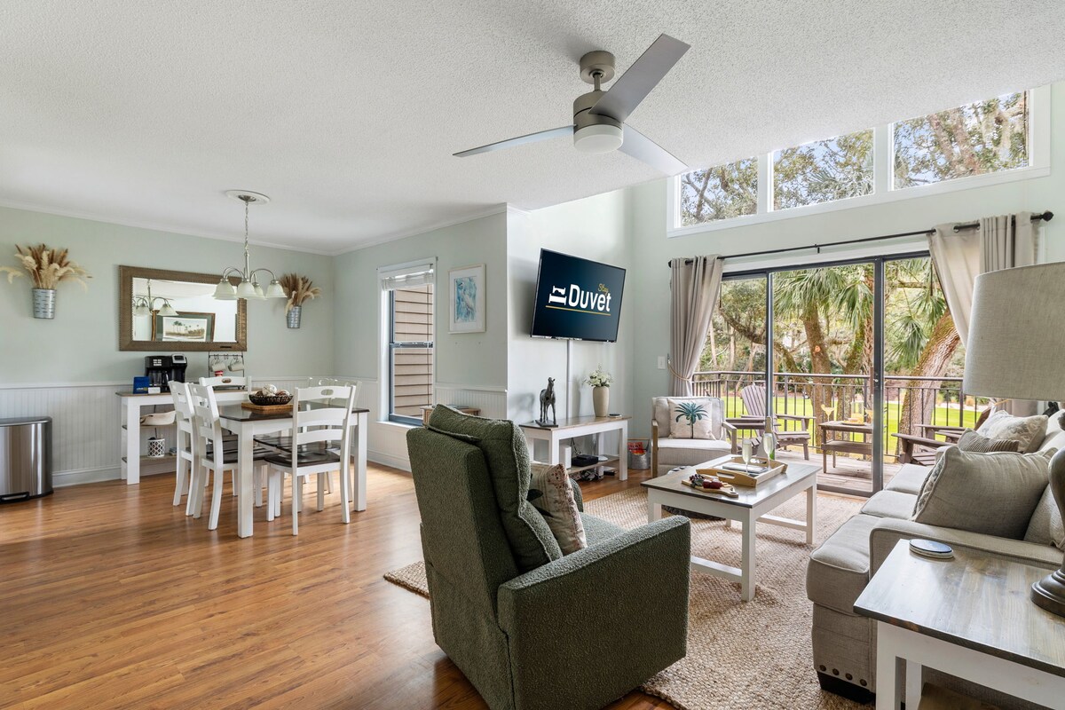 Escape to Seabrook Island, a Private Gated Beach Community! Stay at a Bright, Modern, Renovated Upper Level 1 Bedroom Villa. An exceptional choice with the combination of luxury and ideal location. The urban, beach chic style features everything you need for enjoyment and relaxation. Updated kitchen is equipped with all essentials. Enjoy the screened porch or a drink on the deck overlooking the tennis courts. Owner is a Licensed SC Real Estate Assoc. STR25-000073 Occupany 4, onsite parking max 2