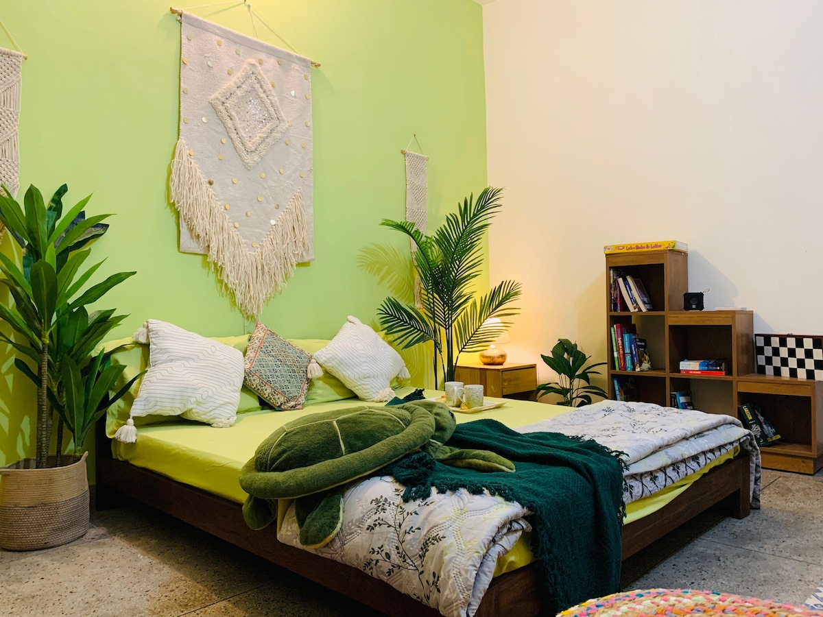 • H13/HEPA telpu gaisa attīrītāji • Ikdienas uzkopšana un tīri dvieļi • Apsaimniekotājs no 10:30 līdz 19:00 • Smart TV ar Netflix, Amazon Prime utt. • Ātrgaitas interneta Wi-Fi • 5-7 minūšu attālumā no Mehrauli modes ielas (labākā naktsdzīve Deli) un Saket Citywalk tirdzniecības centra • 5 minūšu attālumā no Deli metro Laipni lūdzam onnyxro Esmu sarūpējis luksusa atpūtu Dienviddeli, Centrālajā NCR. Izbaudiet lielisku laiku greznās guļamistabās, izsmalcinātā dzīvojamā istabā un privātā atpūtas zonā uz jumta ar burbuļvannu un bāru.