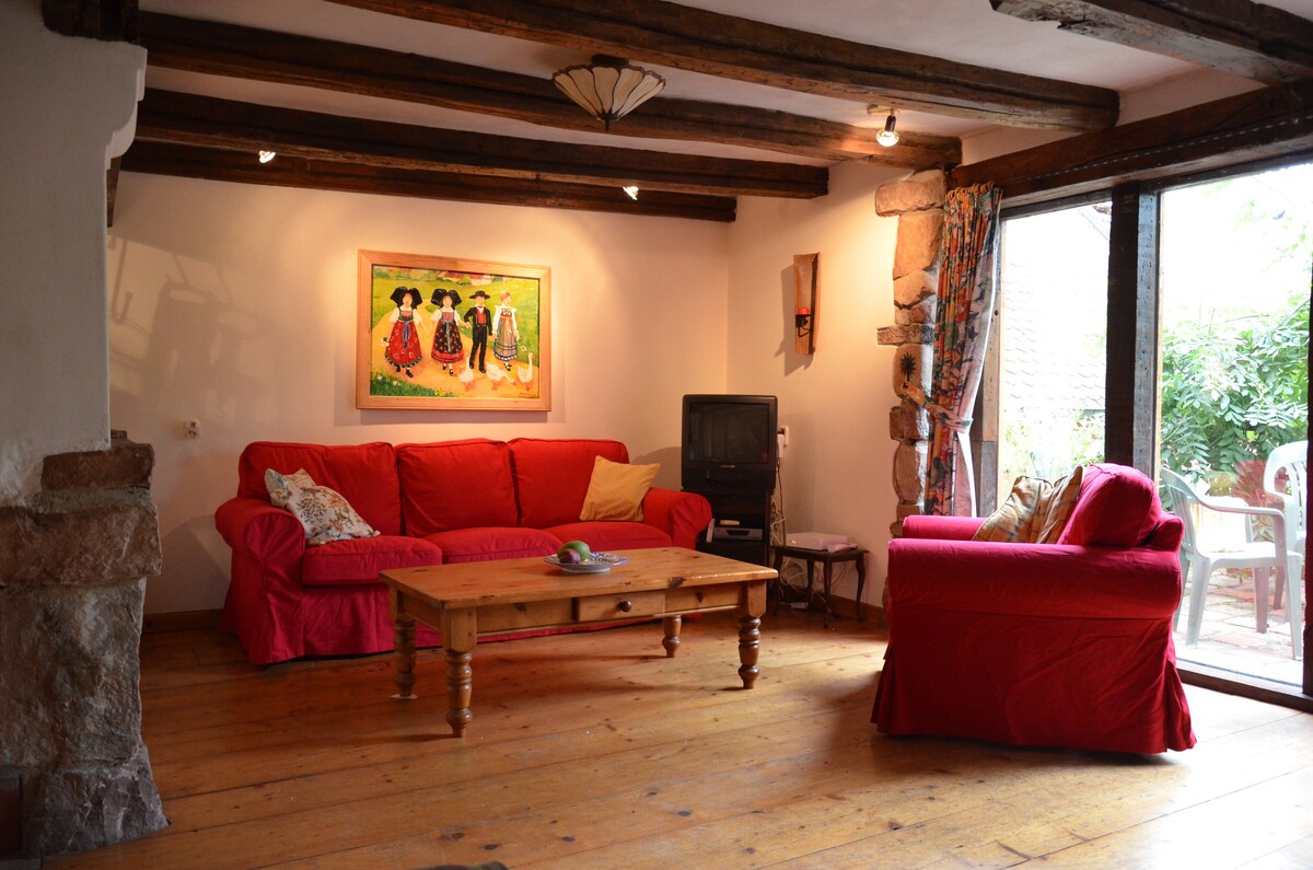 75 m2 dzīvoklis ar aprīkotu virtuvi,ļoti plašs ar ļoti mūsdienīgu iekārtojumu, apvienojot modernu un vecu. varam uzņemt līdz 4 cilvēkiem. šī vieta ir lieliski piemērota ģimenei vai nelielai grupai, kā arī cilvēkiem, kas dodas darba darīšanās. augšstāvā virs ļoti klusa restorāna netālu no autobusa pieturas, kas savieno Strasbūru, kas atrodas 25 km attālumā, netālu no vīna ceļa sākuma netālu no Vācijas, kafejnīca Choclat, tēja brokastīm