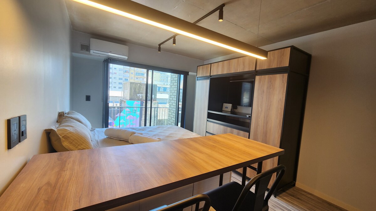 Moderns 1 guļamistabas dzīvoklis Abasto apkaimē, pakāpienu attālumā no dinamiskās Pellegrini ielas un pavisam netālu no Parque Independencia - vienas no pilsētas simboliskākajām zaļajām zonām. Depto ir ideāli piemērots pāriem vai individuāliem ceļotājiem, un tajā ir visas nepieciešamās papildērtības: aprīkota virtuve, Wi-Fi, gaisa kondicionieris, viedtelevīzija. Neatkarīgi no tā, vai ierodaties darba vai izklaides nolūkos, jūs atradīsiet ideālu līdzsvaru starp mieru, savienojamību un komfortu.