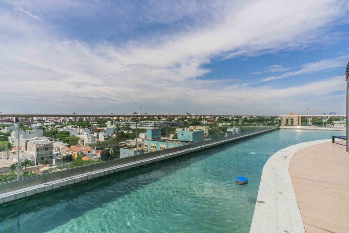 Iespaidīgs dzīvoklis, plašs un gaišs ar privātu terasi, baseinu un grilu. Pilnībā aprīkots un iekārtots, lai padarītu uzturēšanos pēc iespējas patīkamāku. Naktsmītne atrodas modernas ēkas augšstāvā Palermo Soho - vienā no drošākajām vietām ar lielisku gastronomisko un kultūras pievilcību. Ideāli piemērots pāriem, kuri meklē mieru, ērtu atpūtu un bauda neticamu terasi ar skaistu skatu.