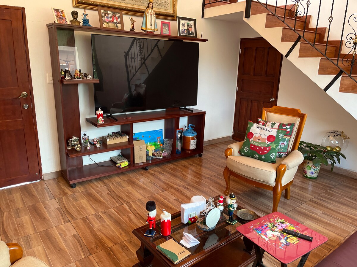 Tā atrodas uz Puente de Tierra ietves, tikai 5 minūšu attālumā no Chiquinquirá un 13 minūšu attālumā no Savojas ar automašīnu. Tajā ir divas istabas - viena ar divguļamo gultu un otra ar divām vienguļamām gultām, vannasistaba ar karstu dušu, pilnībā aprīkota virtuve un ēdamistaba; jums ir pieejama arī dīvāngulta, ja jums ir vairāk cilvēku, interneta pakalpojumu un Smart TV. Dārzā ir malkas virtuve un āra ēdamistaba ar lietussargu . Uz tikšanos!
