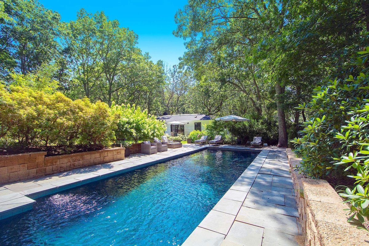 Mūsdienīgs 4 gultu + 4 1/2 vannasistabas mājoklis, kas atrodas parkam līdzīgā dārzu akrā. Peldieties lielajā baseinā (tiek atvērts 04/25 un tiek slēgts oktobra vidū (par apkuri jāmaksā papildu maksa - skatiet tālāk), atpūtieties šūpuļtīklā vai grilā uz klāja. Spēlējiet galda tenisu, šautriņas, baseinu vai dodieties 15 minūšu gājienā līdz privātai līča pludmalei, lai peldētos un airētu. Vai brauciet 15 minūšu brauciena attālumā līdz Atlantijas okeāna pludmalēm un apmeklējiet gleznaino Sāghārboru Montokā. Samazināta uzkopšanas maksa nelielām grupām. RentReg RR-25-399 Iekļauti vietējie nodokļi