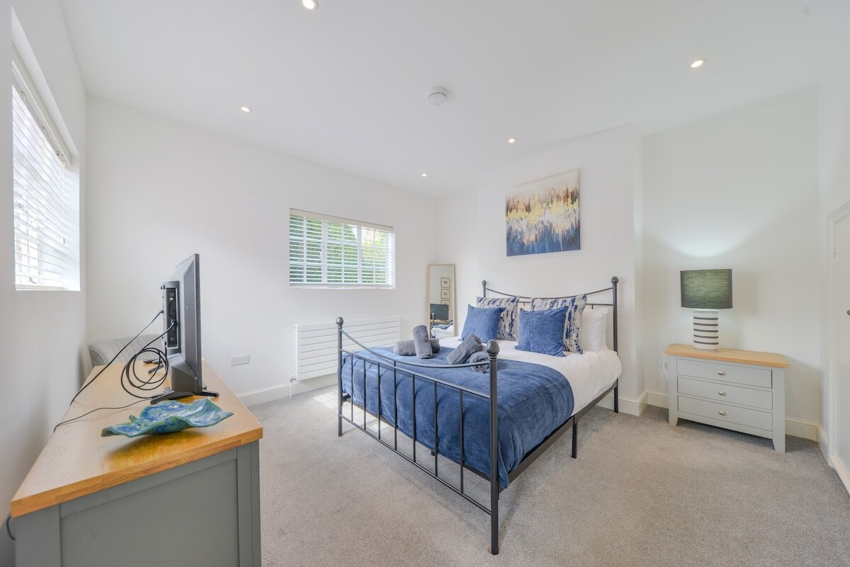 Jauka, gaiša un plaša divguļamā gulta Apvienotajā Karalistē. Pašā pilsētas centrā, netālu no veikaliem un restorāniem. Lūtonas lidosta - 11 minūtes ar vilcienu; ar automašīnu 20/30 min. Dzīvoklis ietver lielu dzīvojamo platību ar virtuvi un ēdamgaldu, vannasistabu un guļamistabu ar Apvienotās Karalistes karaļa izmēra gultu Bezmaksas autostāvvieta ir pieejama piešķirtā vietā privātā autostāvvietā 2 minūšu attālumā no dzīvokļa. AUTOSTĀVVIETA IR STINGRI PĒC VIENOŠANĀS Dzīvoklis atrodas iepretim krogam (slēgts no 2025. gada septembra). Tomēr mums ir ļoti maz ziņojumu par troksni.
