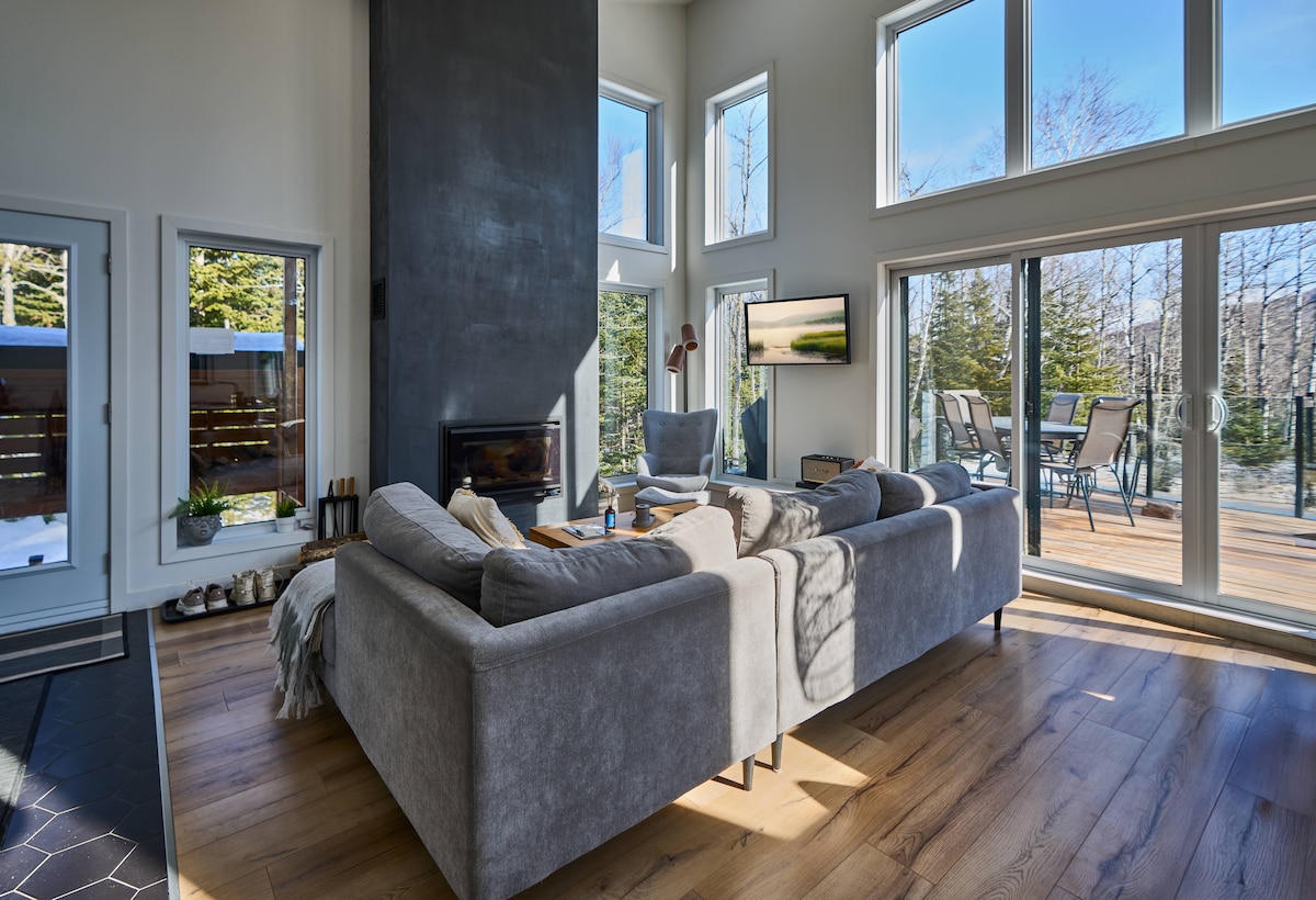 Experience 7 years of Superhost excellence in this modern Charlevoix haven. Perched on a mountain, our Zen retreat features forest-level windows and high-speed Fiber Optic internet. Just 10m from the top of Le Massif, 15m from the bistros and galleries of Baie-St-Paul and 1h from Quebec City. Enjoy "Northern Coziness" in a spacious living area designed for quality time. Ideal for quiet escapes; no parties or events. Your mountainside sanctuary for relaxation and exploration awaits. CITQ #298792