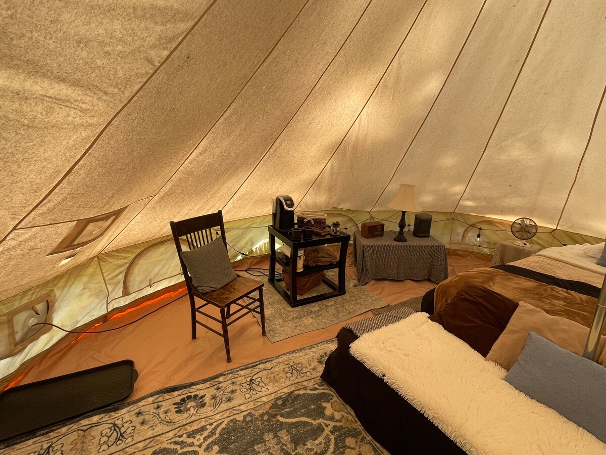 Mūsu sienas telts piedāvā saldu atpūtu mežā aptuveni 10 jūdžu attālumā no Bejfīldas. Mēs atrodamies nelielā strādājošā bioloģiskajā saimniecībā ar dārzeņu un daudzgadīgiem dārziem, ābelēm un lauku mītnēm. Mēs atrodamies netālu no Superiora ezera un esam aptuveni 6 jūdžu attālumā no Meiersbīčas Apostla salu nacionālajā ezerā. Mūsu īpašums atrodas 40 akru platībā un no tā paveras skaists skats uz Superiora ezeru. Mēs atrodamies tūkstošiem akru apgabala zemes malā. Ideālā atpūta!