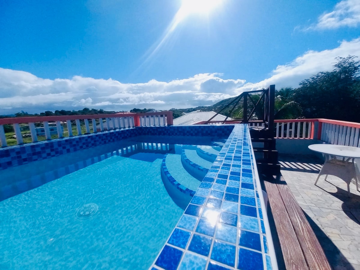 Atpūtieties šajā mierīgajā oāzē. Šajā tīrajā, plašajā, modernajā studijas tipa dzīvoklī ir minivirtuve, veļasmašīna/žāvētājs, īpaša dārza zona ar grilu un ieeja ar kodu. Atrodas tikai 4 minūšu attālumā no lidostas bez gaisa satiksmes trokšņa, 10 minūšu attālumā no tuvākās pludmales un 10 minūšu attālumā no Antigvas Amerikas Universitātes. Ietver Wi-Fi, rezerves ģeneratoru un veselas mājas ūdens filtrēšanas sistēmu. Ideāli piemērots ceļotājiem, kuri meklē mierīgu, klusu mājokli, kas nodrošina ērtības un komfortu.