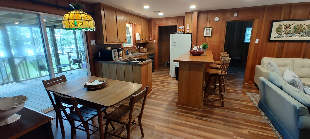 Mājīga, burvīga un rakstura pilna - šī 3BR 2BA ezera māja tika uzbūvēta 70. gados ar vietēji slīpētu koku un ir ideāli piemērota ģimenes izklaidei. 10 guļvietas ar karali, karalieni, divām divvietīgām guļvietām un izvelkamu dīvānu. Izbaudiet Wi-Fi, veļasmašīnu/žāvētāju, ūdens sildītāju bez iedeguma un ekranētu verandu atpūtai. Makšķerējiet vai peldiet no privātās piestātnes ar kontaktligzdām un izlietni. Vienkārša, mierīga un radīta atmiņu radīšanai - jūsu atpūta ezera krastā jau gaida!