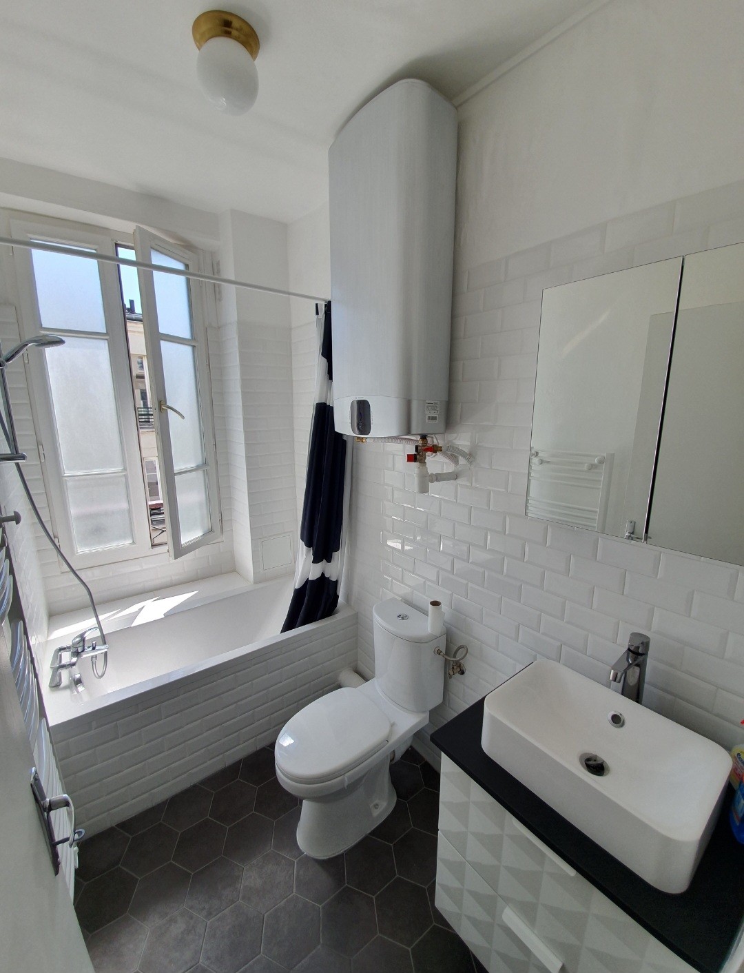 Laipni lūdzam šajā penthausā uz pilnībā atjaunota jumta. Logi no grīdas līdz griestiem to pārpludina ar gaismu. Vakarā ap terasi iedegas spilgtas gaismas. No 70 m2 terases paveras 360 grādu skats uz Parīzi, tostarp Eifeļa torni. Lieliski piemērots kafijai, sauļošanai vai vīnam. Tā atrodas 5 minūšu gājiena attālumā no 1. metro līnijas, kas stiepjas cauri visai Parīzei (Bastille, le marais, Chatelet, Louvre, Concorde, Champs Elysées)