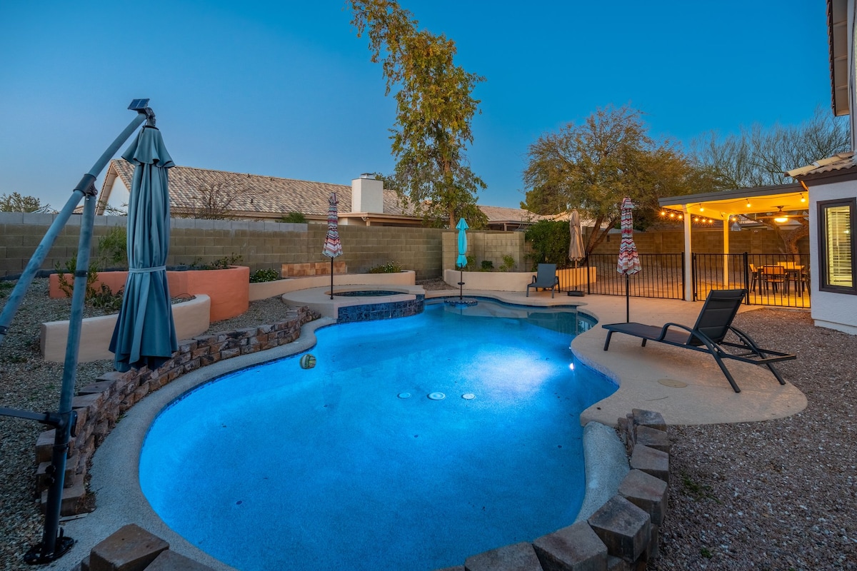 Fantastiska izklaide ģimenei 5BR ar baseinu/spa Gilbertā