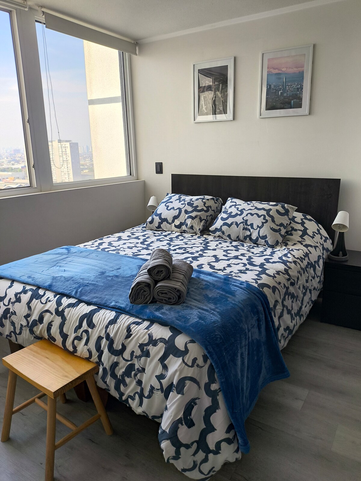 Atpūtieties šajā klusajā un stilīgajā mājoklī. atklājiet šī jaunā dzīvokļa komfortu Santjago de Čīlē . IDEĀLA AUTOSTĀVVIETA līdz 2 personām . Tajā ir 1 guļamistaba ,vannasistaba, pilna virtuve,terase , 5 G Wi-Fi,televizors 55 ". Ēka piedāvā peldbaseinu, sporta zāli, kvinčus un velosipēdus DAŽU SOĻU ATTĀLUMĀ NO EL Parron METRO. Tās apkārtnē atradīsiet : bārus , diennakts ēdināšanas vietas,aptiekas, lielveikalus , restorānus. JŪSU IDEĀLĀ IZVĒLE