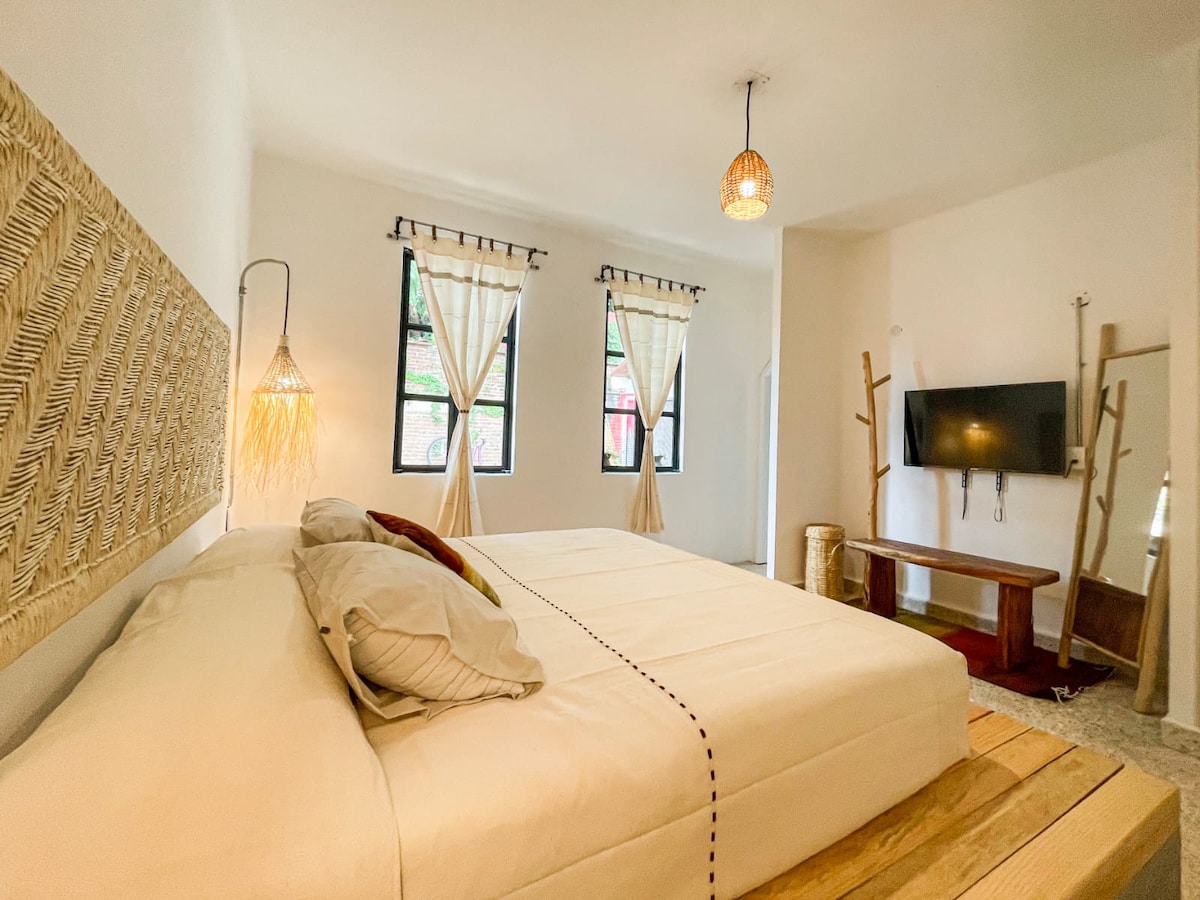 Neatkarīgs augšstāva dzīvoklis ar studiju un papildērtībām, pilnībā aprīkots 3 līdz 4 cilvēkiem, divvietīgs numurs ar vienu Queen izmēra gultu katrā. Atrodas dzīvojamā apkaimē, kas pievienota Hočimilko apkaimei Atpūtieties un atpūtieties šajā mierīgajā oāzē.