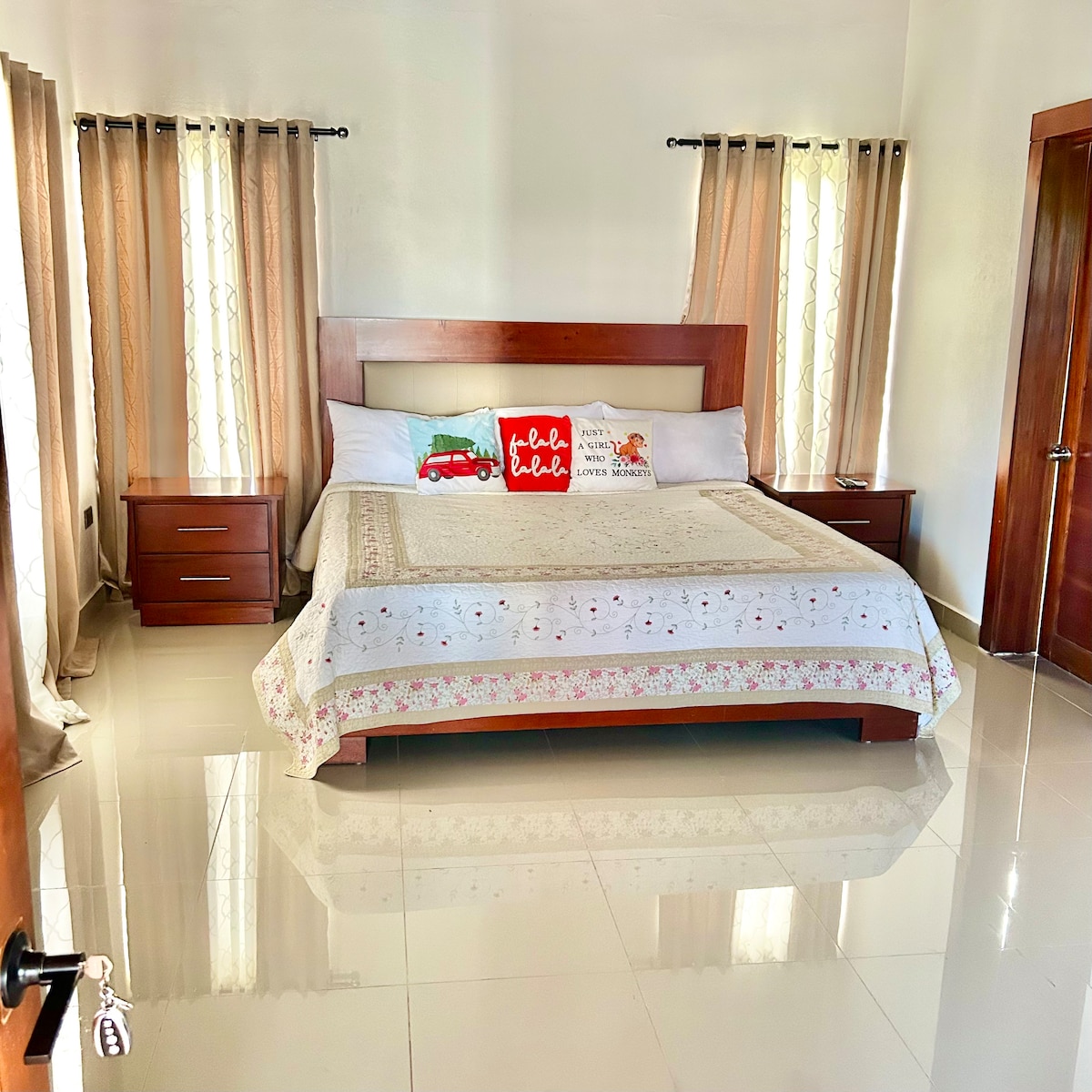 Luksusa dzīvoklis, kas mēbelēts ekskluzīvās zonas trešajā līmenī, tajā ir 3 istabas, 2 vannasistabas, dzīvojamā istaba, ēdamistaba, terase, Wi-Fi, viedtelevīzija, gaisa kondicionētājs, sildītājs, drošības piekļuve visā dzīvojamajā ēkā. Mēs iznomājam transportlīdzekli par labu cenu. Viss atrodas netālu no Star Drink, Chill Lounge, Manantial Pharmacy, Palmares Mall, Banco Popular, Ban Reservations, Bhd.