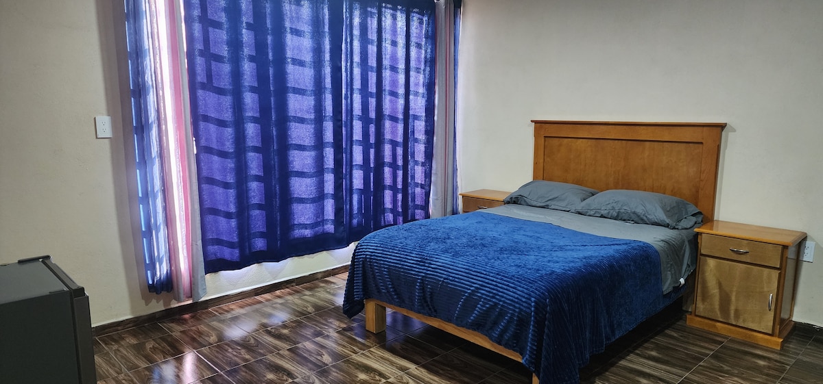 Disfruta de una estancia cómoda, privada y funcional en San Luis Potosí. Nuestra habitación está diseñada para que te sientas como en casa, ya sea que viajes por trabajo o descanso. Cuenta con clóset, frigobar, baño privado con agua caliente y wifi de alta velocidad. El huésped tiene acceso a un área común para cocinar equipada con parrilla a gas y horno de microondas. Espacio tranquilo, funcional y pensado para una estancia práctica y confortable.