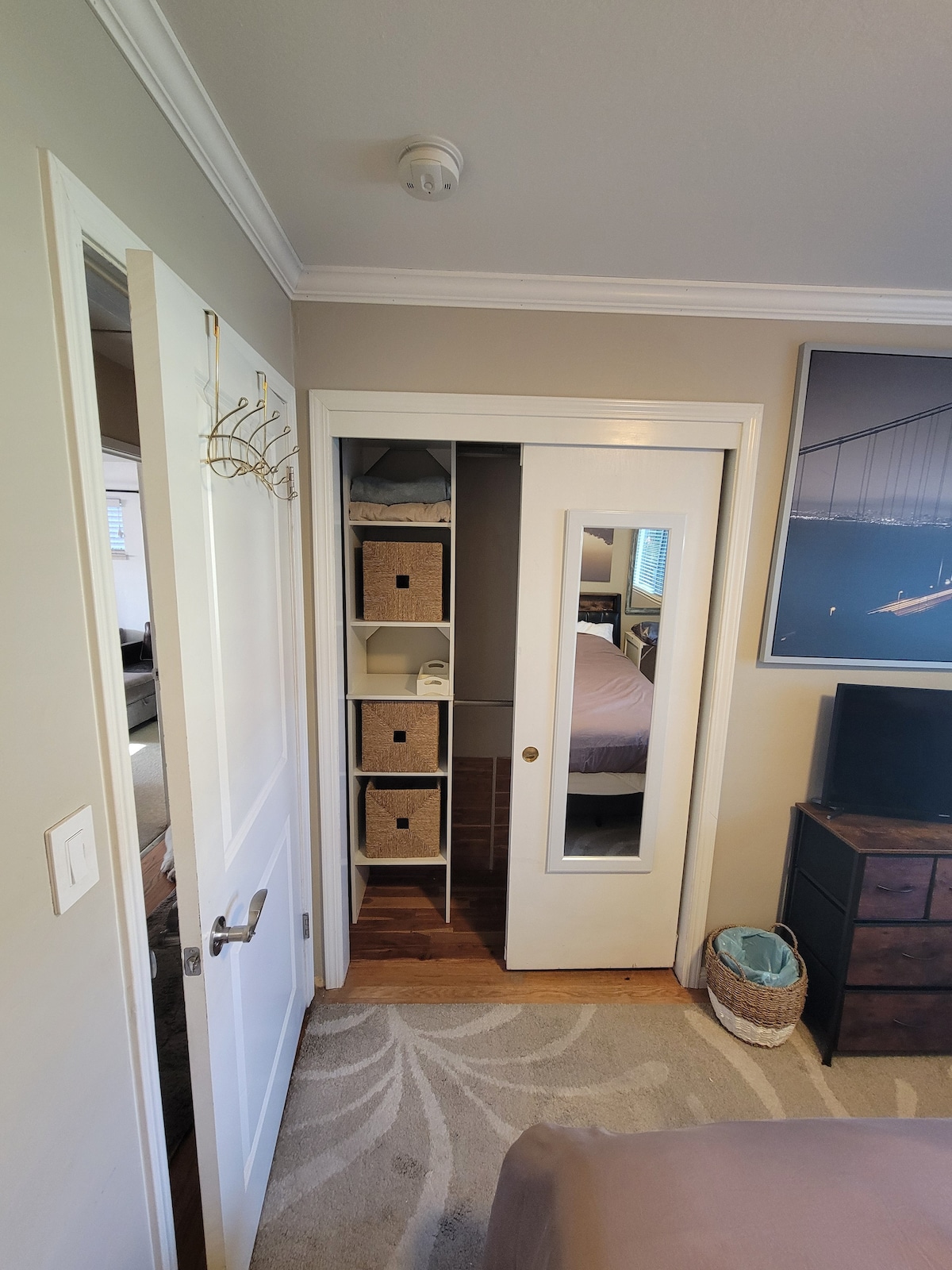 Privāta istaba vienģimenes mājā. Aptuveni pusjūdzes attālumā no Hwy 92 un 880. Aptuveni 3,2 jūdzes vai 10 minūtes līdz Heivordam Bārtam. 15 min attālumā no lidostas. Man ir moderns, ērts un ļoti tīrs mājoklis. Plaša skapja telpa. Pilna izmēra kumode. Rakstāmgalds ar papildu atvilktni. 45 collu Roku televizors. Laipni lūdzam izmantot jaunas virtuves ierīces. Ledusskapis, mikroviļņu krāsns, tosteris, kafijas automāts, ēdamistabas galds. 2 pilna izmēra dzīvojamās istabas. Daudz vietas autostāvvietā. Plašs pagalms. Veļasmašīna/žāvētājs garāžā.