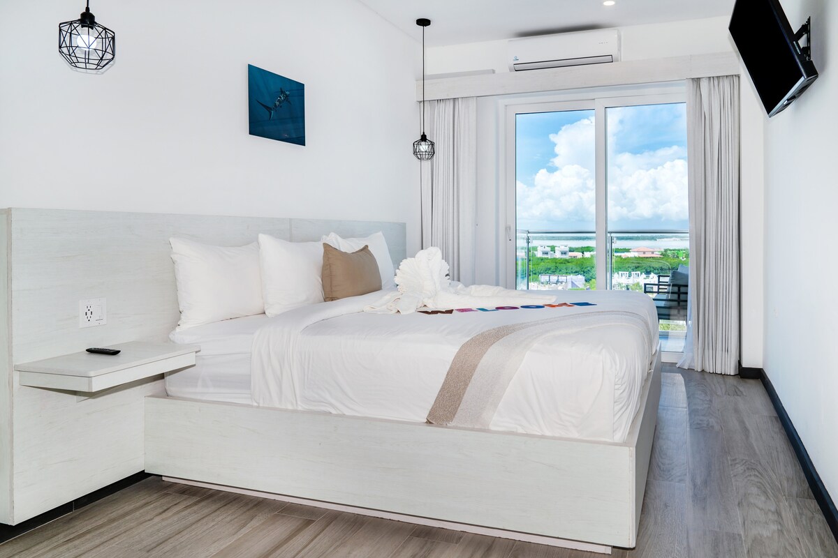 Oceanview 1 Bedroom | Unit 508 – The Watermark Hotel Dive into paradise at Oceanview Unit 508, a stunning 1-bedroom unit with a private balcony offering breathtaking ocean views. Enjoy modern comforts like air conditioning and free Wi-Fi. Dive into relaxation with access to a community rooftop pool, or explore nearby snorkeling and fishing spots. Perfect for your next Belize getaway!