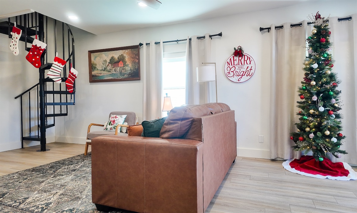 🏡Private guesthouse just 1 mile from town—perfect for a peaceful getaway! 🦃🎀 Decorated for the holidays 🛏️ 2 bedrooms (downstairs + loft), sleeps 6 🚿 Walk-in shower ✨ Hot tub under the stars 🍽️ Full kitchen & dining area 📺 2 Smart TVs 🌀 Spiral stairs to loft ✨ String lights & BBQ grill 🐾 Pet friendly 🌾 Located down a private ½-mile dirt road 📍5 min to Goldthwaite, 20 mins to San Saba, 30 mins to Regency Bridge