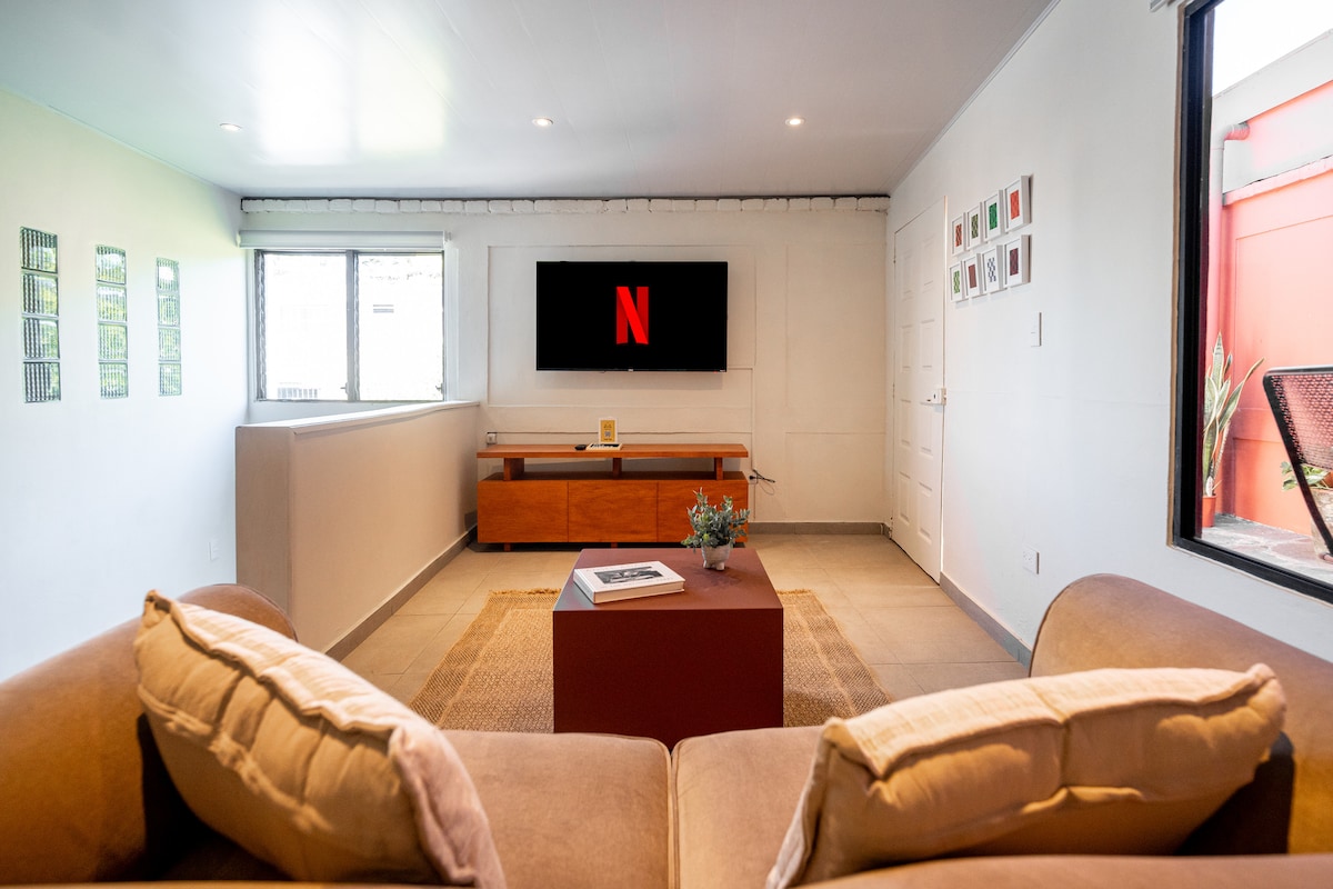 Lieliska atrašanās vieta Sansalvadorā! Tikai dažu soļu attālumā no Plaza Presidente, Apartamento type Loft pilnībā aprīkots jūsu atpūtai vai darījumu braucienam!! Jūs atradīsiet: • 5G Wi-Fi • 55collu viedtelevīzija • Bluetooth skaļruni • Mesa spēles • Gaisa kondicionētājs • Ledusskapi • Gāzes plīts • Cepeškrāsni • Mikroviļņu krāsni • Gludekli • Gludināmo dēli • Fēns • Duša • Ruļļu aizkarus Dzīvoklis ir aprīkots ar modernu ēdamistabu, virtuvi, dīvāngultu un 2 vienguļamajām gultām, lai jūs varētu izbaudīt uzturēšanos.