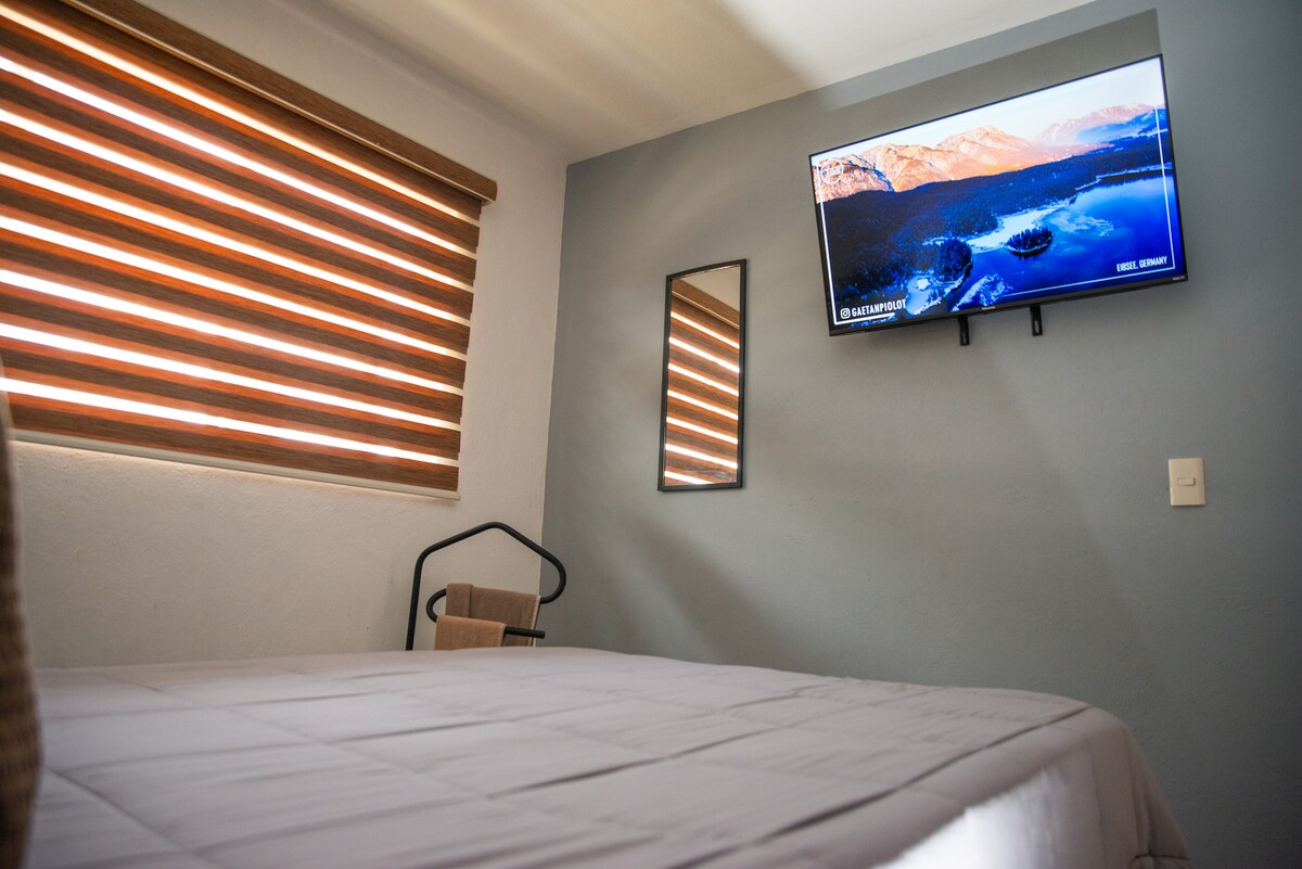 Atklājiet savu patvērumu pašā pilsētas sirdī, minimālistisku, plašu un gaismas piepildītu loftu Virgen de Gpe svētnīcas pusē. Ideāli piemērots 1-2 cilvēkiem, ērts, moderns un ideāli piemērots atpūtai vai darbam. Ar Wi-Fi, aprīkotu virtuvi (mikroviļņu krāsns, kafijas automāts, plīts, ledusskapis), rakstāmgaldu, televizoru un skapi. Pretī ēkai ir jauks tirgus ar vietējiem ēdieniem, aptiekām un veikaliem. Droši un ar āra novērošanas kamerām - izbaudiet autentisko vietējo pieredzi. #Centrālā #Ērti #Neaizmirstami