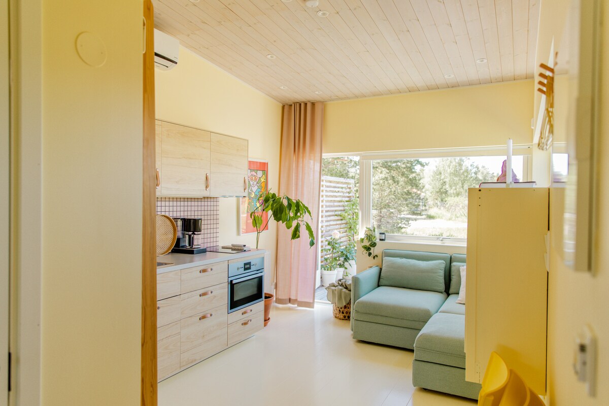 A convenient cottage beautifully located in a big garden, close to the Baltic Sea, in the village of Fröjel, 40 kilometers South of Visby. The cottage offers a kitchen corner, bathroom with shower and toilet, and a double sofa bed (additional mattress or baby cot can also be arranged), and more. Guests can also sit in the outside seating area, to enjoy the sea view. The cottage and garden is located 100 meters from the Church of Fröjel as well as an medieval ruin with a great view.