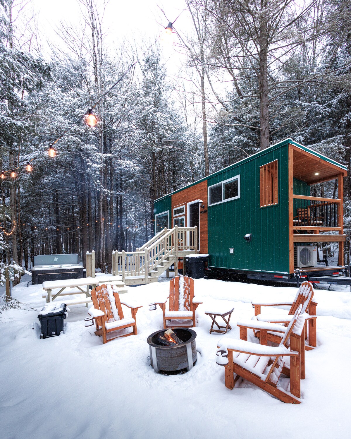 Nakšņojiet Hidden Pines namiņos. Moderns namiņš, kas privāti paslēpts mežā. Ar modernām papildērtībām tas ir ideāli piemērots romantiskai atpūtai. Atpūtieties burbuļvannā, skatoties uz zvaigžņu pilnām debesīm. Dodieties pirtī, visapkārt atrodoties dabas ieskautā vietā. Atpūtieties pie ugunskura vietas. Plašā taku sistēma, kas atrodas majestātiskajā agamenticus kalna mežā, ir tālu no mūsu ceļa. Īss brauciens līdz Ogunquit/ york pludmalēm, tirdzniecības vietām Kittery un netālu no Portsmutas, Duvras un Portlendas restorānu ainām.