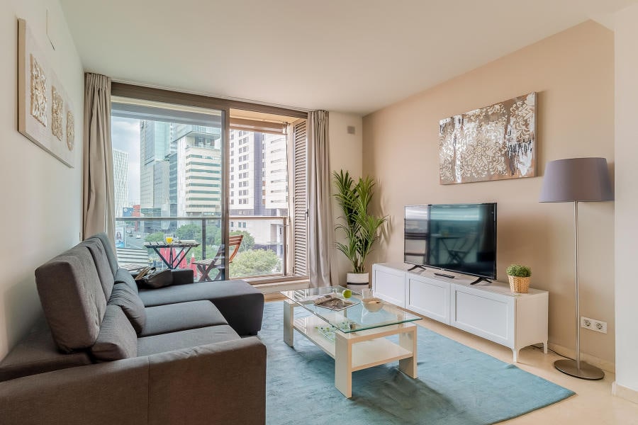 Legal touristic apartment. Number HUTB-036640 Private parking slot included in the price in the same building. We use 'Vikey' for mandatory guests registration for guests over 14 years old Very closed to CCIB - Port Forum - Beach - Diagonal Mar shopping centre. Supermarket at 100 mts open from 8 to 23 (7 days a week) Brand new sunny 1 room apartment ideal for 2 but up to 4 people Swimming pool in the groundfloor(water is *not* heated) Beach at 400mts. CCIB and Diagonal Mar mall at 800 mts