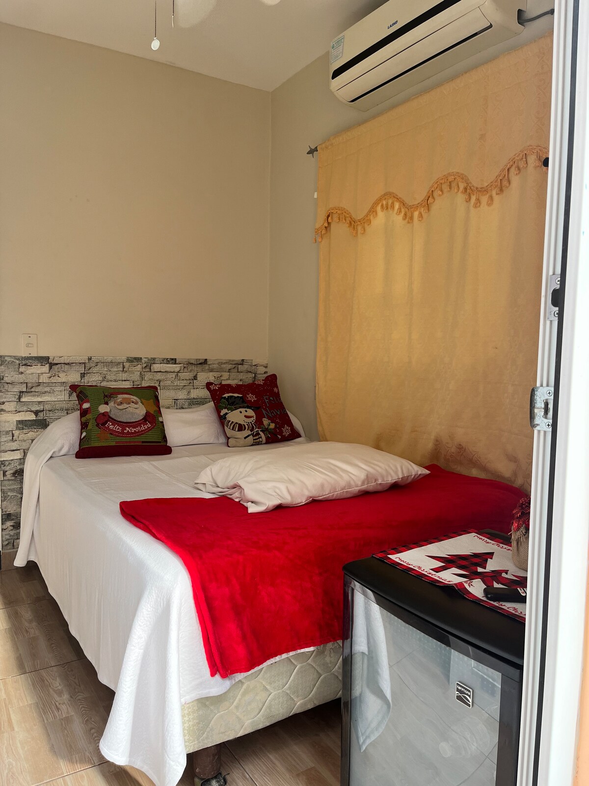 🛌 Dzīvoklis slēgtā kopienā ar diennakts apsardzi, kas atrodas ideālā vietā netālu no Ramón Villeda Morales lidostas un dažu minūšu attālumā no tirdzniecības centriem, restorāniem, aptiekām, lielveikaliem un degvielas uzpildes stacijām. Tajā ir numurs ar divguļamo gultu, privātu terasi, gaisa kondicionētāju, pilnībā aprīkotu vannasistabu, viedtelevīziju, ēdamistabu un minivirtuvi. - Divu transportlīdzekļu stāvvieta Telpas ir pilnībā mēbelētas un iekārtotas, lai nodrošinātu ērtu un mājīgu uzturēšanos kā mājās.