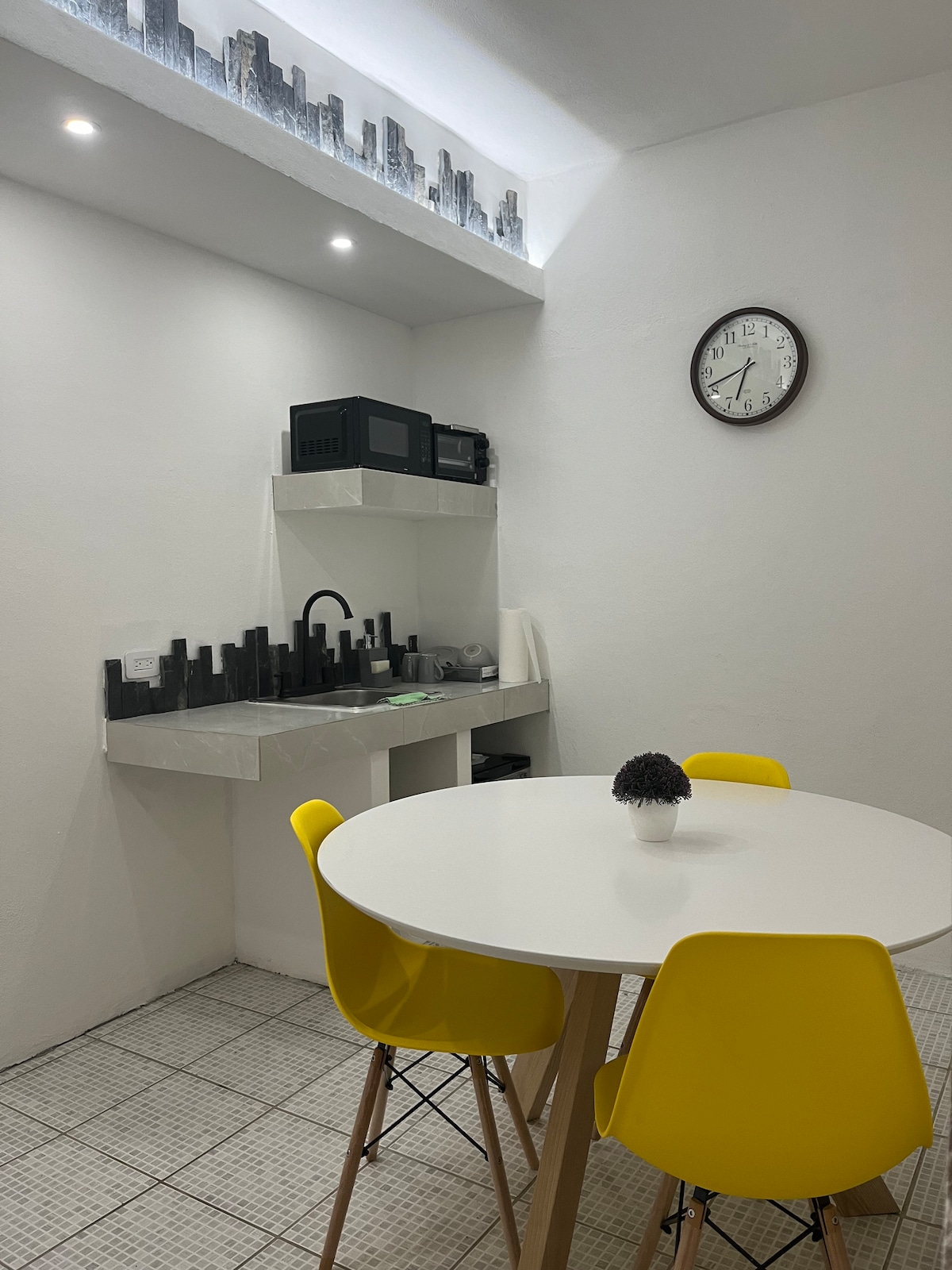 Cozy loft-style room on the 2nd floor, fully equipped and located in the most prestigious and beautiful area of San Pedro Garza García. Close to the best parks, fine restaurants, bars, shopping centers, and hospitals. Private entrance with a password-protected door and a lovely open-air terrace. Ideal for travelers who want to visit Monterrey.